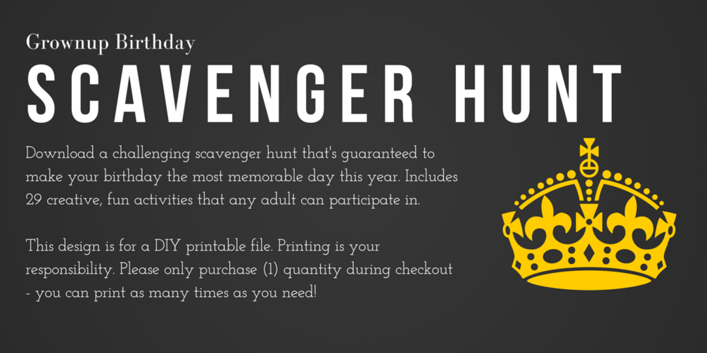 Scavenger hunts aren't only for kids — if you're looking to create an amazing adventure for an adult birthday party, our scavenger hunt is one of the best ways to get everyone involved and having fun.